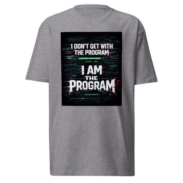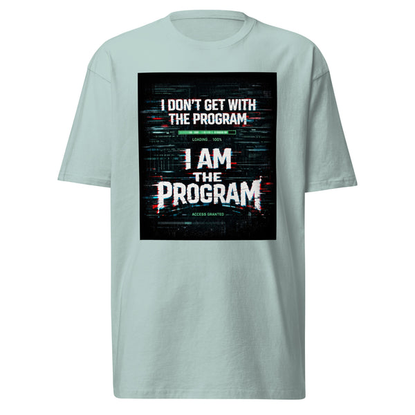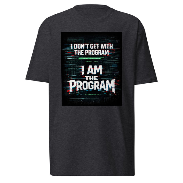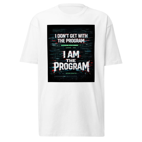 The “I DON’T GET WITH THE PROGRAM — I AM THE PROGRAM” graphic hits with a powerful glitch-street aesthetic, layered with electric energy and bold typography that demands attention.